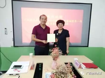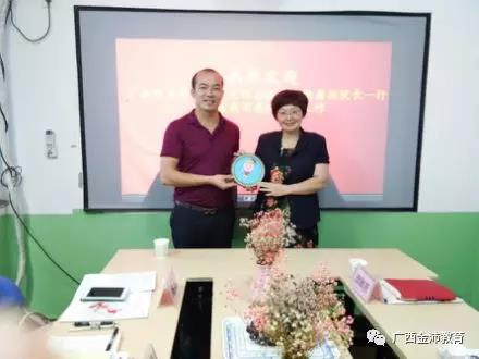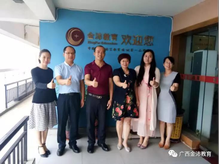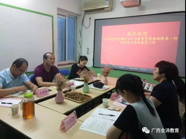 廣西金沛教育國際部團(tuán)隊(duì)與廣西師范學(xué)院國際文化與教育學(xué)院蔣招鳳副院長(右三)一行合影留念