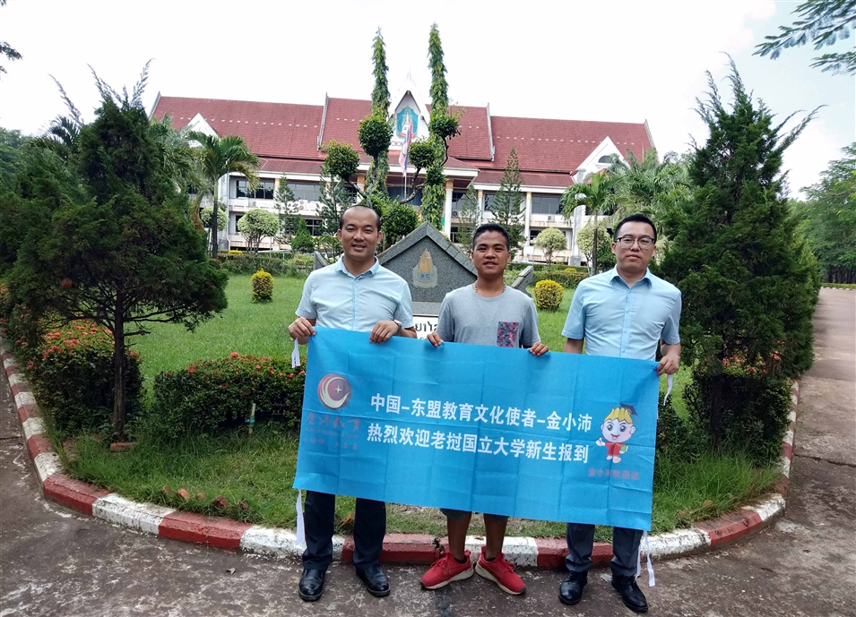 日,廣西金沛教育執(zhí)行董事粟宥朝攜新生至老撾國立大學(xué)辦理入學(xué)手續(xù),并帶領(lǐng)新生參觀了校園和老撾標(biāo)志性建筑,體會當(dāng)?shù)氐娘L(fēng)土人情