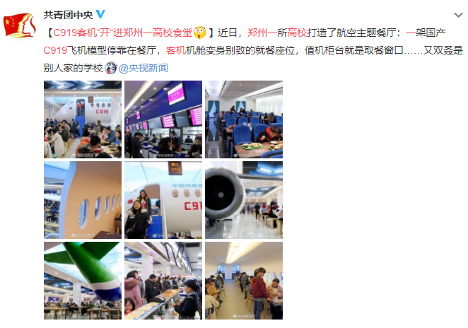 前段時(shí)間,微博@共青團(tuán)中央分享的一則“C919客機(jī)‘開’進(jìn)鄭州一高校食堂”的消息引起網(wǎng)友熱議評(píng)論精彩紛呈。