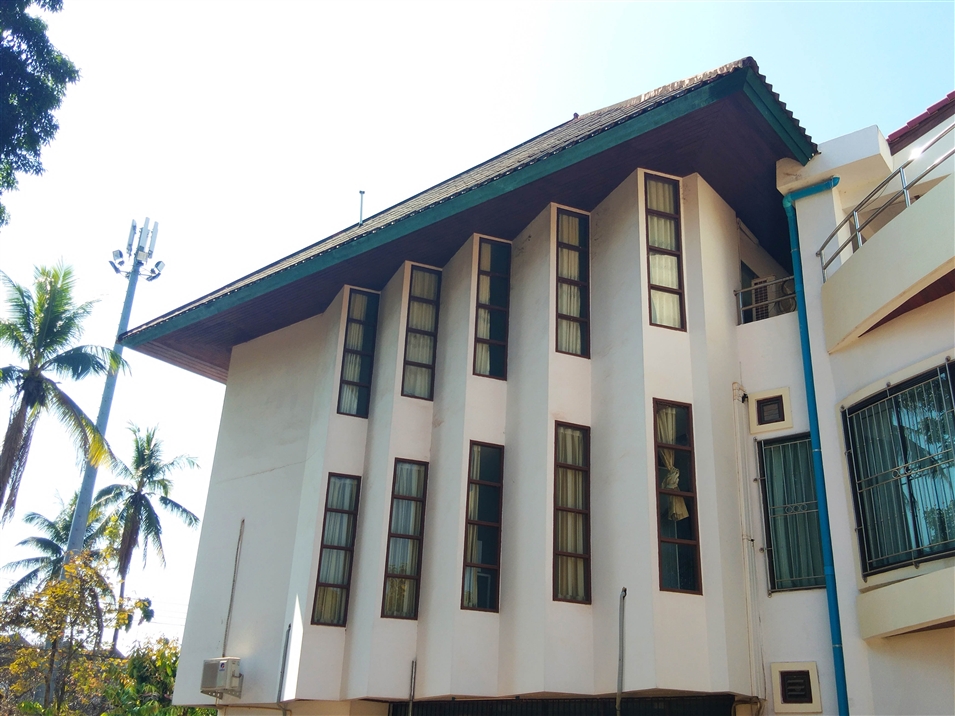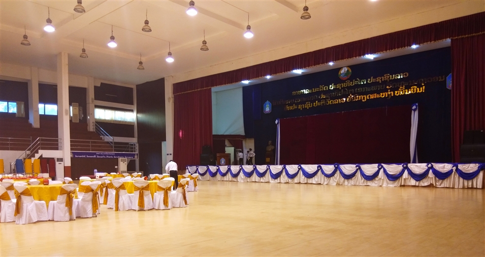 大禮堂在學(xué)校行政樓旁邊,很多人在《留學(xué)|直擊老撾國(guó)立大學(xué)入學(xué)現(xiàn)場(chǎng)》中看到過(guò)。大禮堂內(nèi)部裝飾得整潔明亮,正中央是舞臺(tái),四周設(shè)有看臺(tái),大廳中央也可以擺放一些桌椅,所以一般用于文藝演出和召開(kāi)大型會(huì)議。