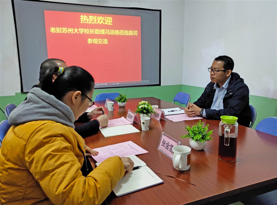 2019年1月7日,老撾蘇州大學校長助理馮溫格拜訪廣西金沛教育,與廣西金沛教育執(zhí)行董事粟宥朝、校長張金雪進行座談。