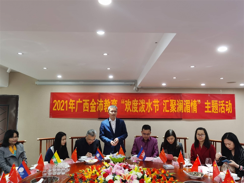 4月9日下午,廣西金沛教育在南寧舉辦了2021年“歡度潑水節(jié) 匯聚瀾湄情”主題活動(dòng),本次活動(dòng)有幸邀請(qǐng)到東盟各國(guó)駐南寧總領(lǐng)事館外交使節(jié),老撾駐南寧總領(lǐng)事館總領(lǐng)事維拉薩宋蓬先生、老撾駐南寧總領(lǐng)事館副領(lǐng)事萬(wàn)賽先生、柬埔寨駐南寧總領(lǐng)事館領(lǐng)事龍瓦塔納先生、緬甸駐南寧總領(lǐng)事館領(lǐng)事佳吉文女士等嘉賓及廣西統(tǒng)戰(zhàn)部?jī)S務(wù)綜合處處長(zhǎng)秦偉鵬先生到會(huì)指導(dǎo)。