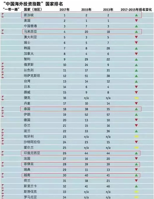 根據(jù)最新發(fā)布的中國(guó)海外投資指數(shù)來(lái)看,東盟國(guó)家排名第一。2017年,新加坡超越美國(guó)排名第一。