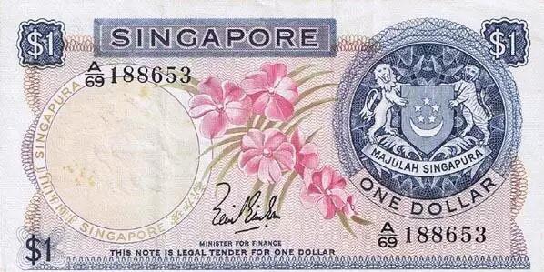 自 1965 年新加坡從馬來亞聯(lián)邦中退出并宣告獨(dú)立的兩年內(nèi),新加坡依舊使用著馬來亞與英屬婆羅洲元。直到 1967 年,原“馬來亞與英屬婆羅洲貨幣委員會(huì)”停止發(fā)行馬來亞與英屬婆羅洲元,新加坡才于當(dāng)年開始發(fā)行本國的鈔票“新加坡元”,簡(jiǎn)稱新元或新幣。