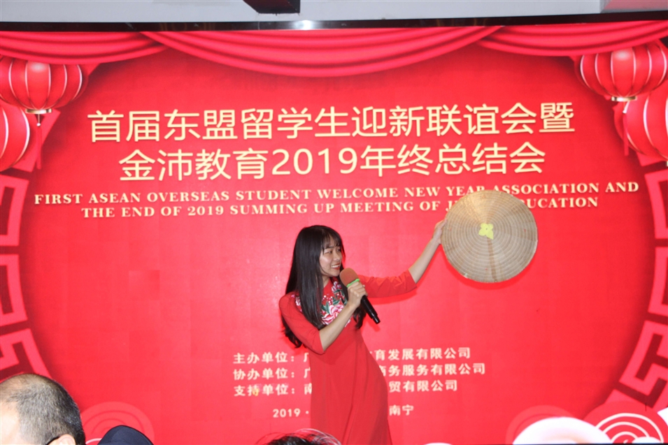 12月14日,由廣西金沛教育主辦的“首屆東盟留學(xué)生迎新聯(lián)誼會(huì)暨金沛教育2019年終總結(jié)會(huì)”在南寧舉行,此次聯(lián)誼會(huì)分兩個(gè)部分組成,下午,金沛教育帶領(lǐng)東盟留學(xué)生游覽南寧青秀山風(fēng)景區(qū),參觀東盟友誼長(zhǎng)廊,在大草坪進(jìn)行互動(dòng)游戲交流,晚上,東盟各國(guó)駐南寧使館外交官和東盟留學(xué)生一起歡聚一堂,載歌載舞。