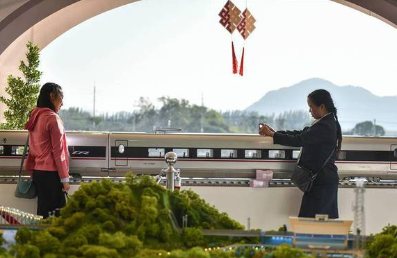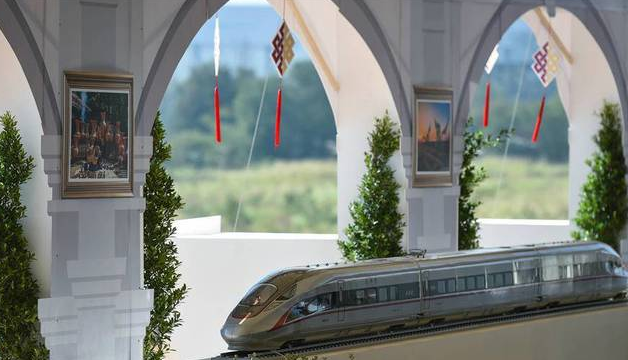 這是在泰國(guó)東北部呵叻府巴沖縣舉行的中泰鐵路合作項(xiàng)目一期工程開(kāi)工儀式上展出的中國(guó)復(fù)興號(hào)高鐵列車(chē)模型(12月21日攝)。
