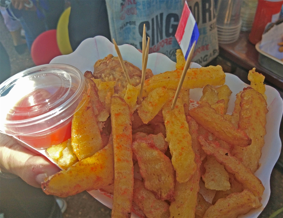 這是一場以各國美食為媒介的文化互動,文學(xué)院各系的學(xué)生在美食活動現(xiàn)場展示了日本、中國、老撾、韓國、法國歐、亞兩州不同國家的美食,比如中國的燒仙草、法國的薯條、老撾的肉串等,老撾國立大學(xué)的學(xué)生在暢享美食之際也在進(jìn)行飲食文化的分享與交流。