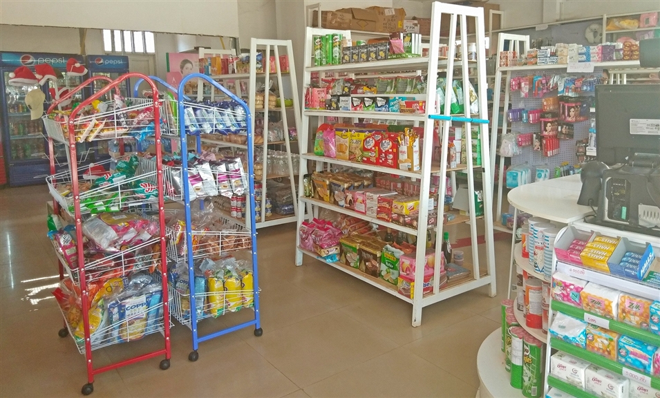 小商店都有一個特點(diǎn)——“麻雀雖小,五臟俱全”。宿舍區(qū)小商店面積大概55平米,里面整齊排放著幾排貨架,各種商品琳瑯滿目。