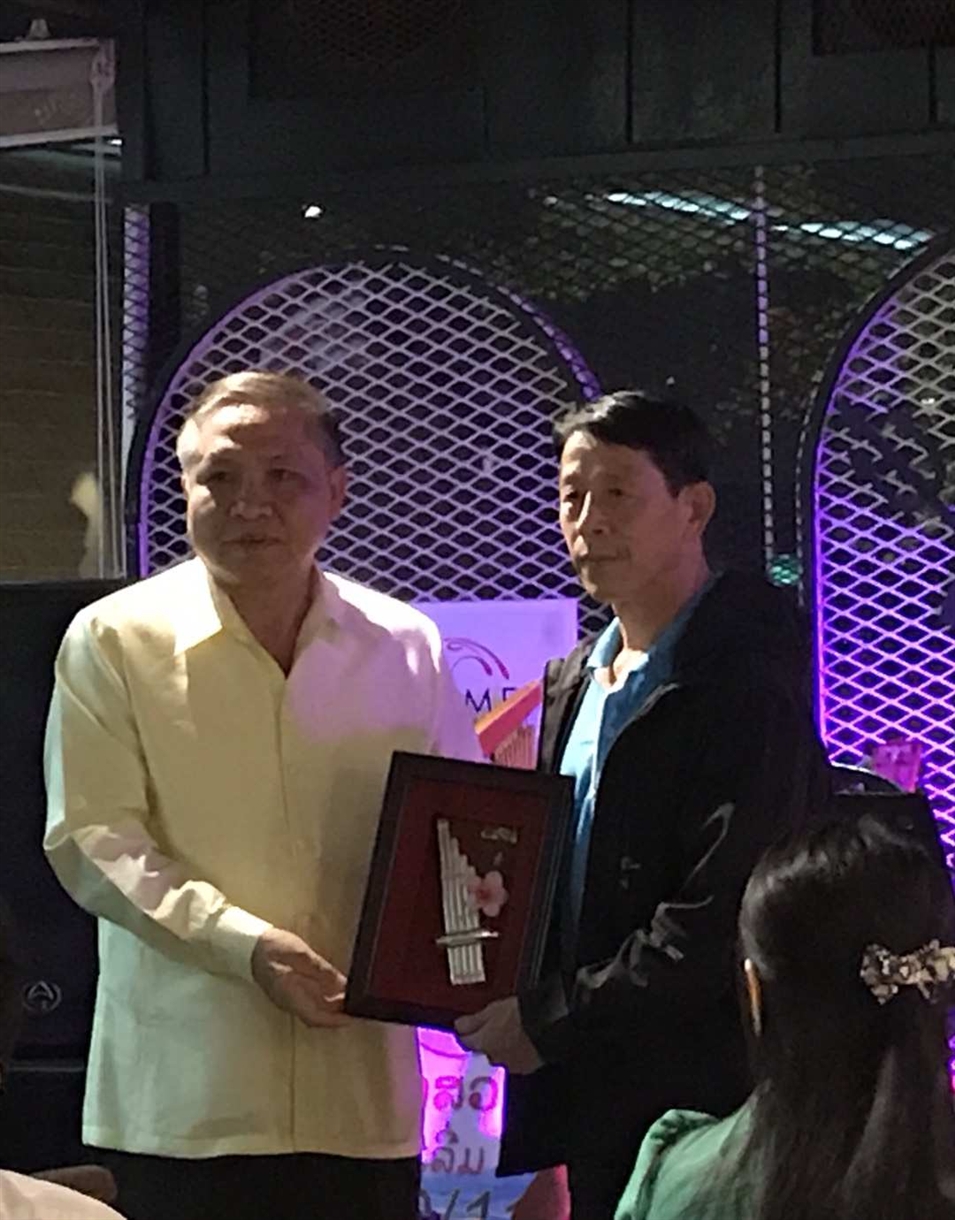 11號(hào)晚上老撾國(guó)立大學(xué)校長(zhǎng)宋西·諾潘賽為劉傳書老師、王慶陽老師頒發(fā)紀(jì)念品,表示對(duì)兩位老師的感謝,感謝兩位老師對(duì)老撾國(guó)立大學(xué)的支持與幫助,并希望兩位老師以后能常來國(guó)立大學(xué)交流訪問。