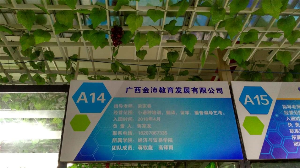 金沛教育財經(jīng)學院校區(qū)位于廣西財經(jīng)學院相思湖校區(qū)大學生創(chuàng)新創(chuàng)業(yè)孵化基地A14