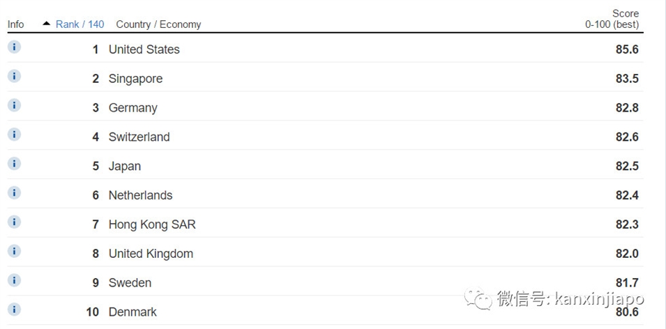 本次新加坡以2.1分的差距位居第二,其中在交通、衛(wèi)生和貿(mào)易開(kāi)放方面表現(xiàn)尤為出色。